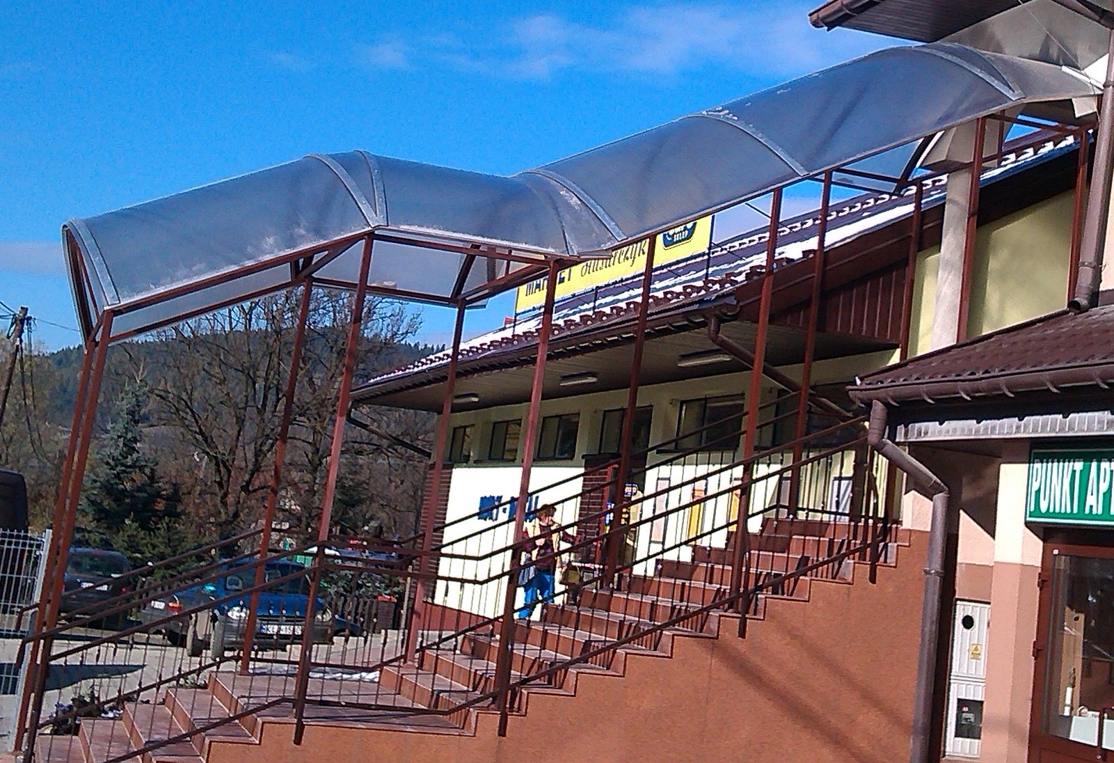 Ochrona przed deszczem i słońcem Poznaj nasza ofertę W naszej ofercie posiadamy również daszki z poliwęglanu. Konstrukcja wykonana jest z aluminium, wypełnieniem mogą być różnego koloru płyty z poliwęglanu, zarówno proste jak i półokrągłe.