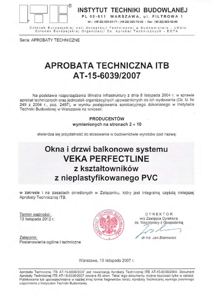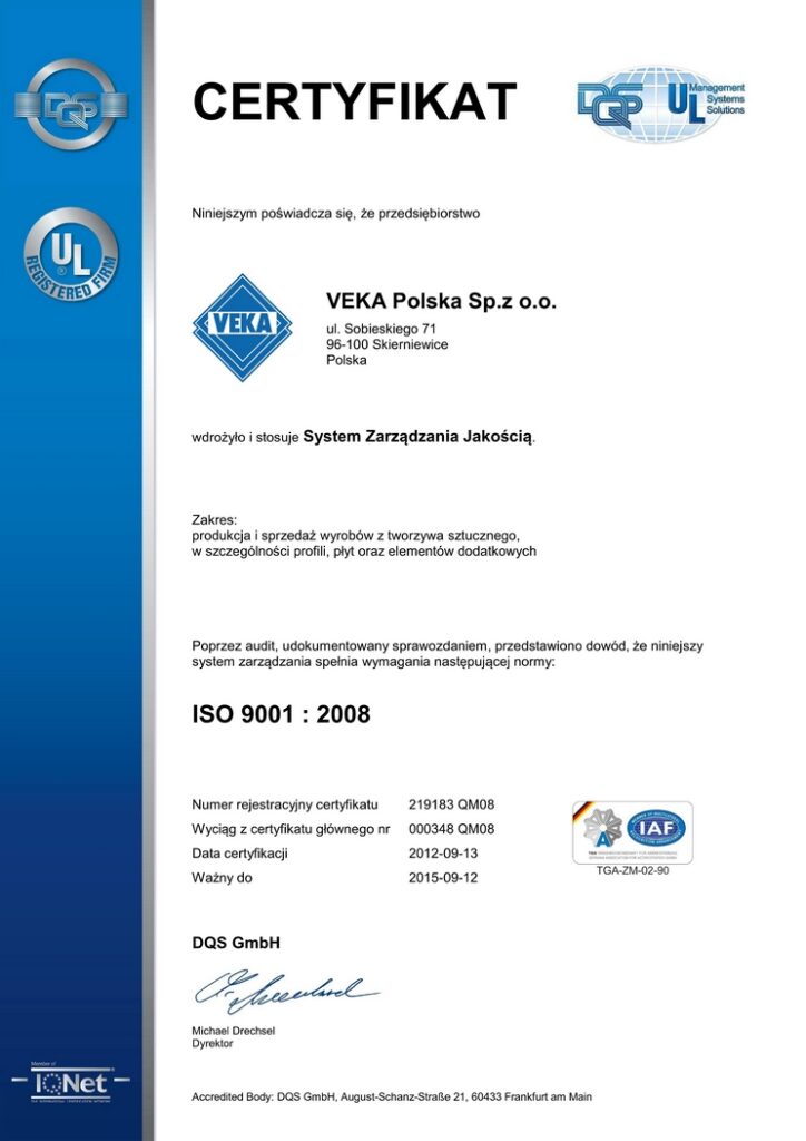 Certyfikat autoryzacji VEKA Certyfikat DQS VEKA Atest PZH VEKA Aprobata ITB VEKA Dyplom emisja CO2 Certyfikat zgodności Veka Softline82 Certyfikat zgodności VEKA Perfectline CE Press Glass szkło bezpieczne Atest PZH VEKA Certyfikat autoryzacji Aliplast