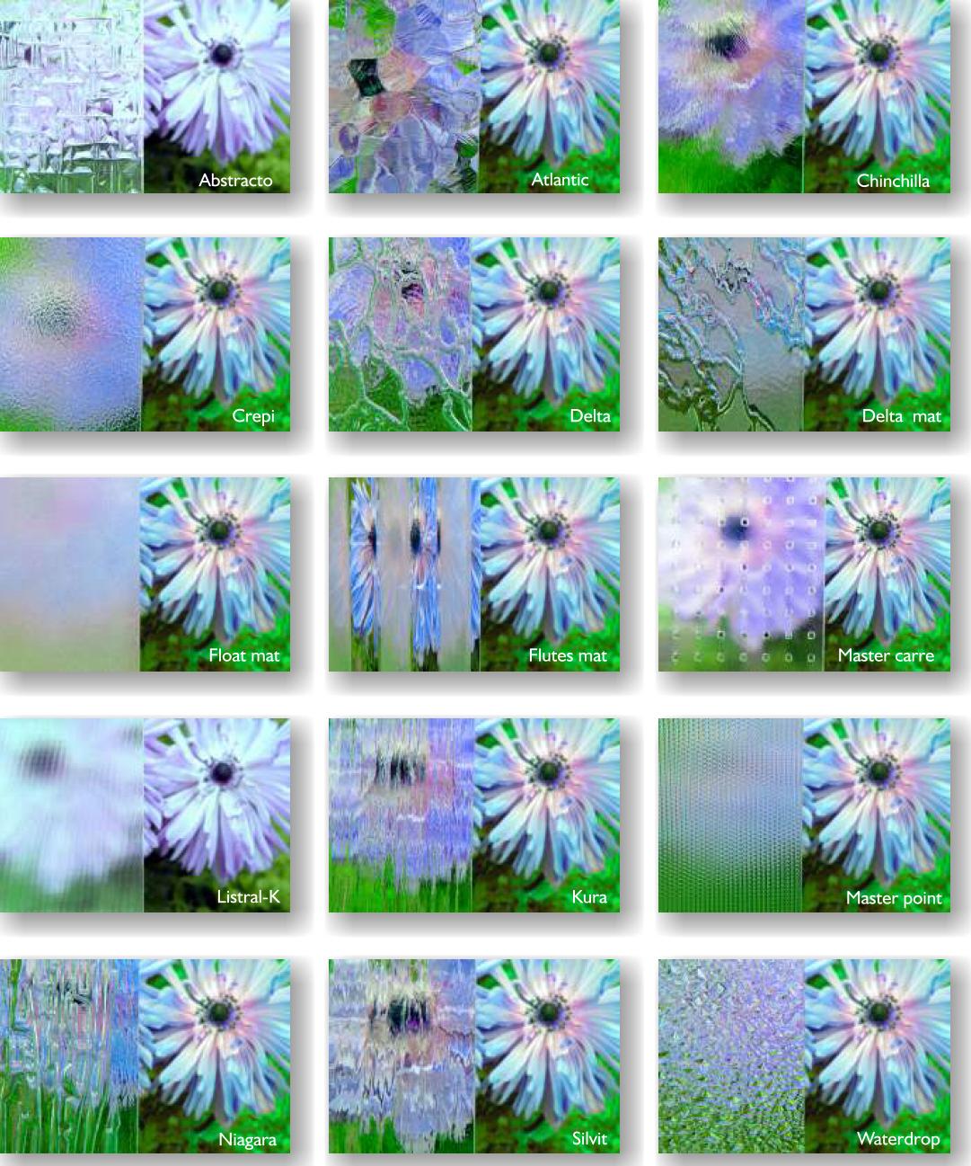 Szyby ornamentowe – mają za zadanie ograniczyć przejrzystość, jednocześnie nie zmniejszając dopływu światła (np. do łazienek, wc). Mogą być stosowane również jako element ozdobny.